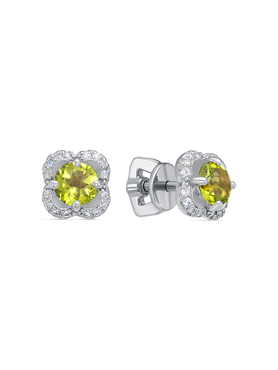 Серьги с хризолитом и фианитами из серебра 925 пробы арт. 2-04-279-22р