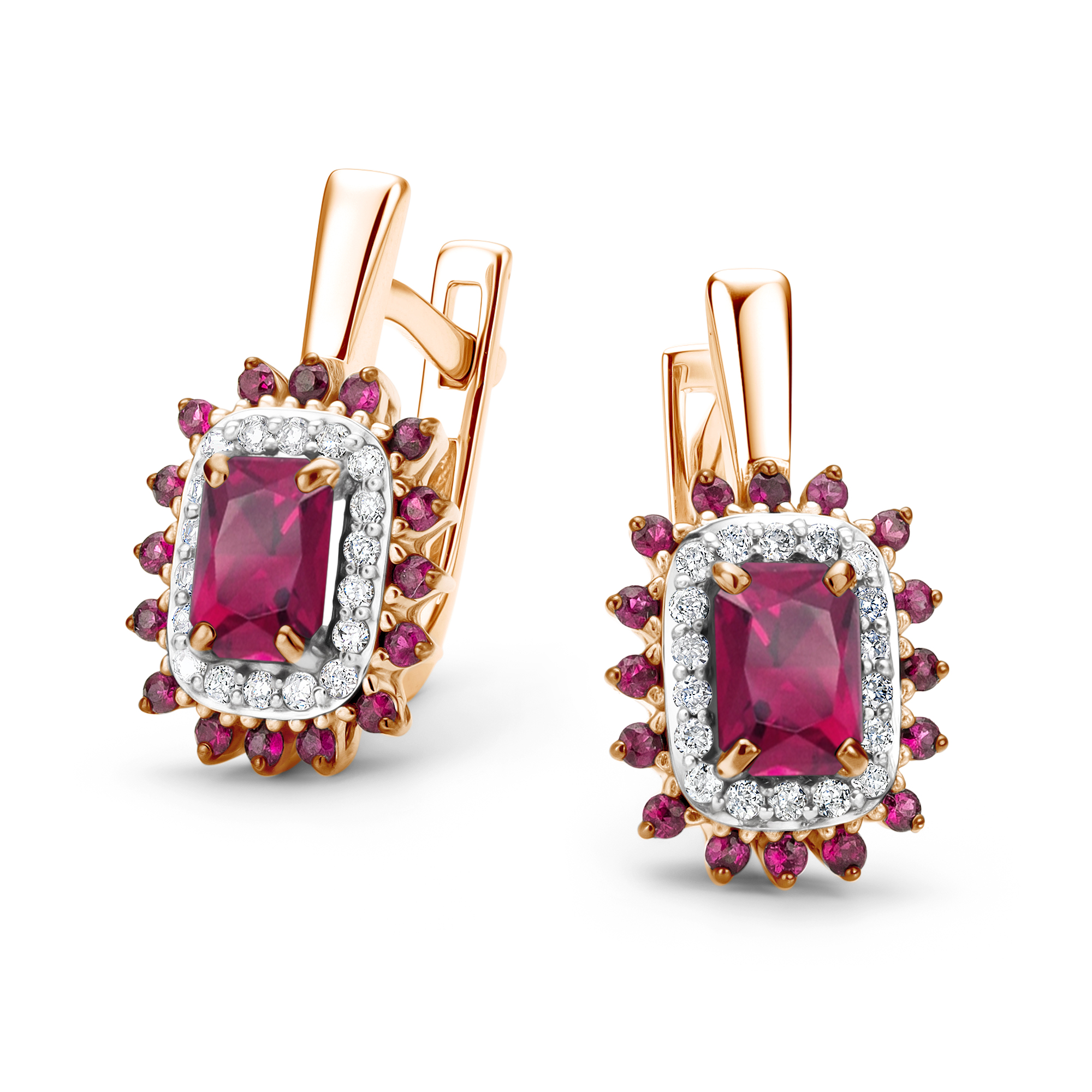 Серьги с рубинами и бриллиантами из золота 585 пробы арт. 26130-103