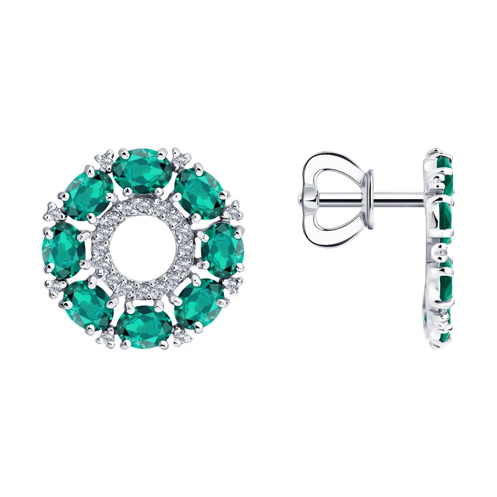 Серьги с изумрудом и бриллиантами из белого золота 585 пробы арт. 3020767-3