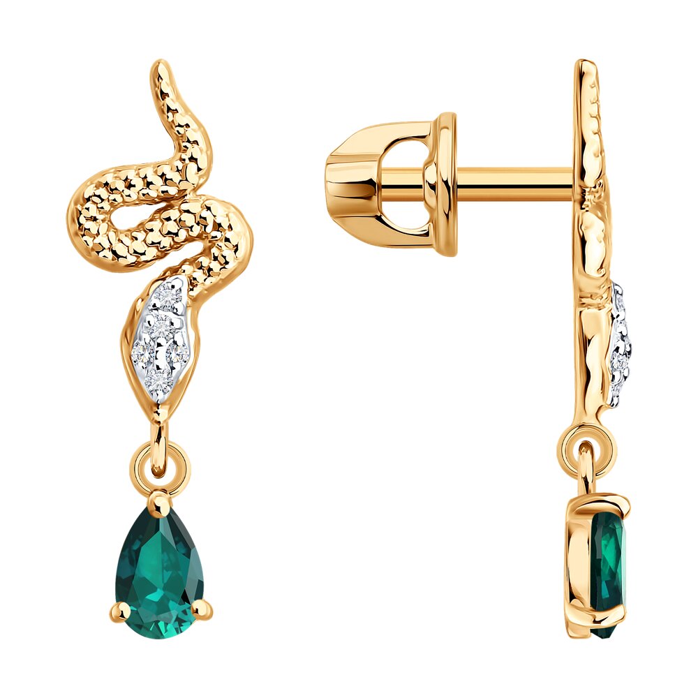 Серьги с изумрудами и бриллиантами из золота 585 пробы арт. 3020776