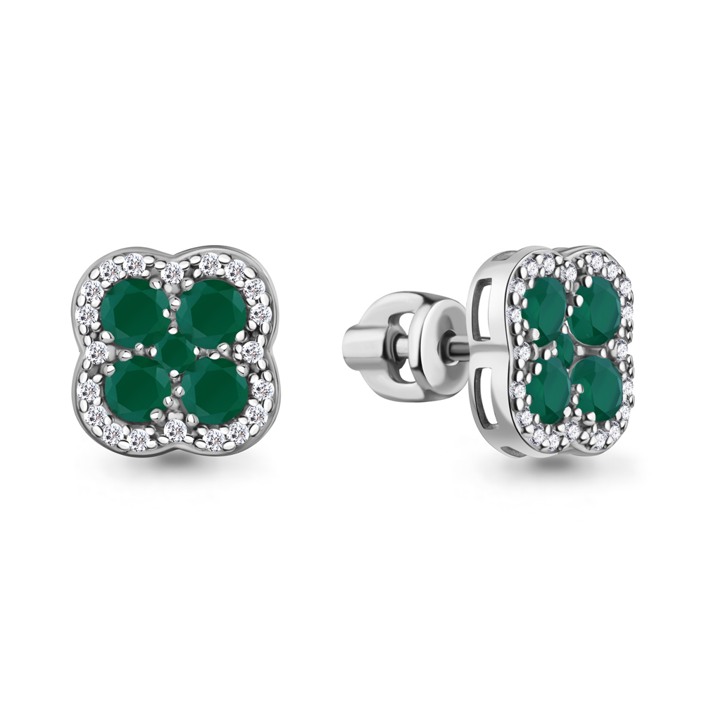 Серьги с агатом и фианитами из серебра 925 пробы арт. 45032209А.5