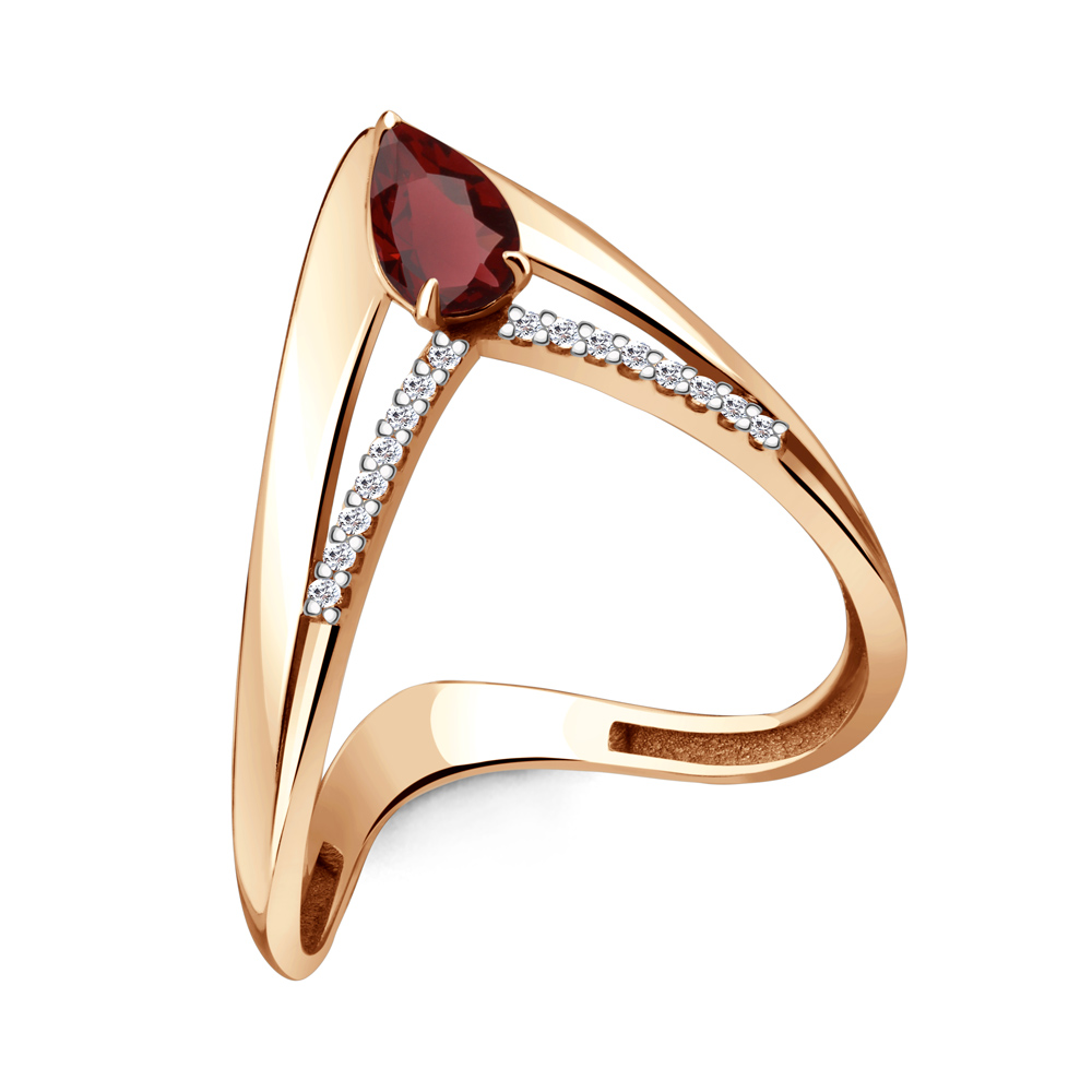 Кольцо с гранатом и фианитами из серебра 925 пробы