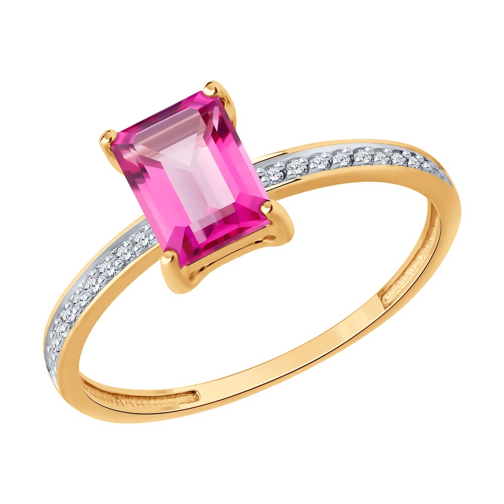 Кольцо с топазом и фианитами из золота 585 пробы