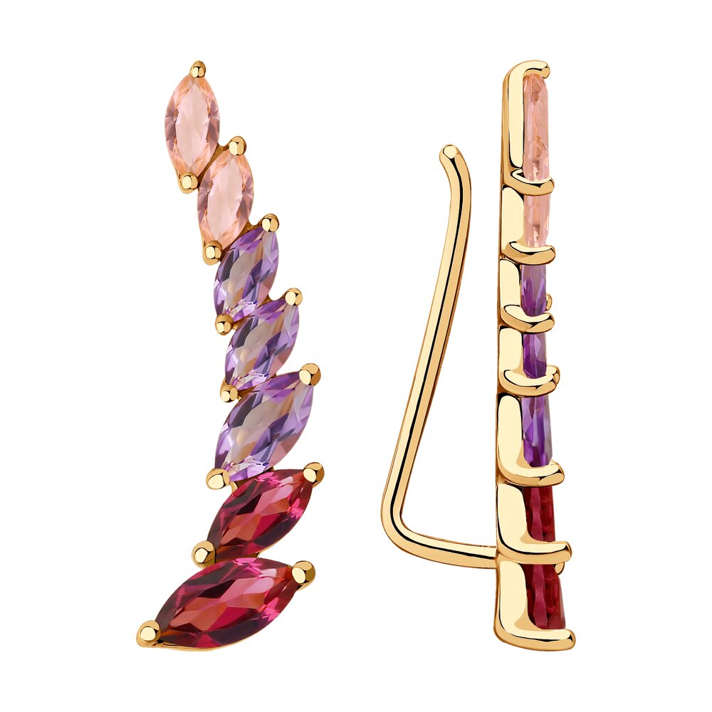 Серьги с аметистами, родолитом и ситаллом из золота 585 пробы арт. 726065