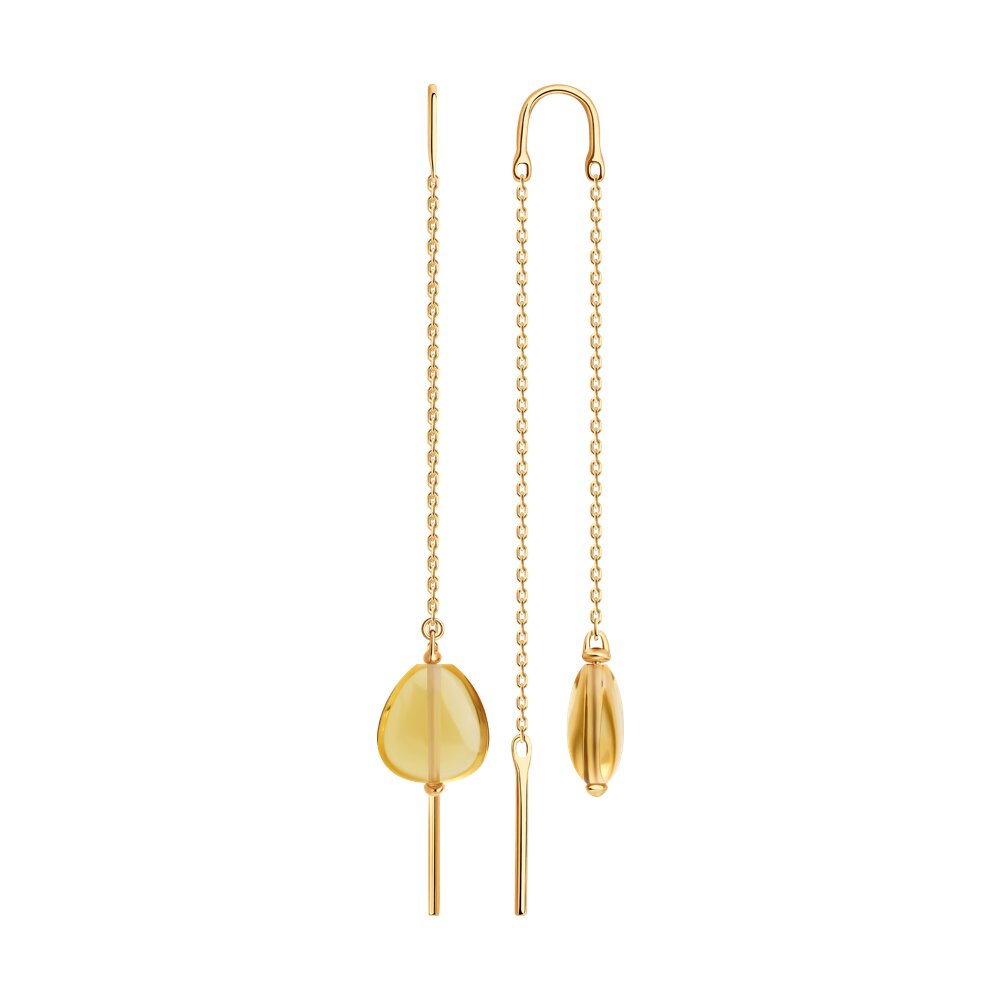 Серьги с цитрином из золота 585 пробы арт. 729267
