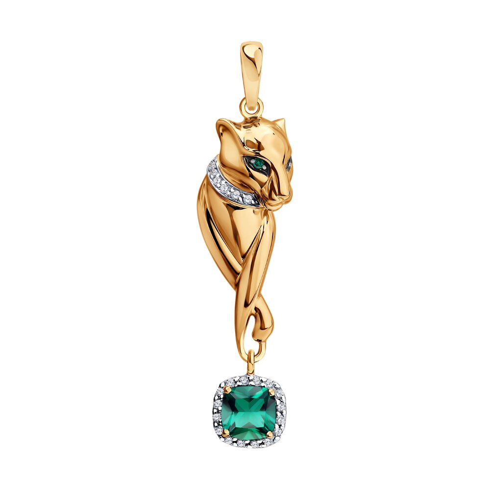 Подвеска с изумрудами и бриллиантами из золота 585 пробы арт. 73-00210