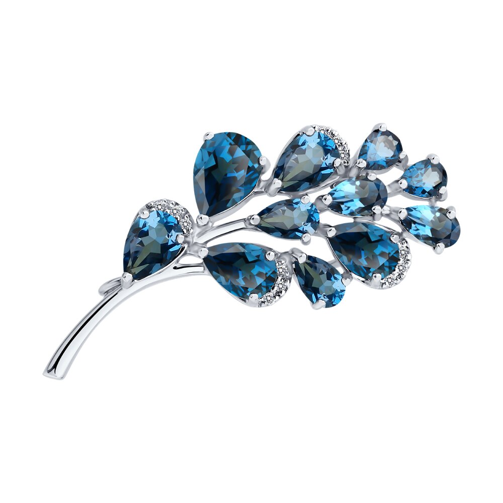 Брошь с топазами и бриллиантами из золота 585 пробы арт. 74-00017-3