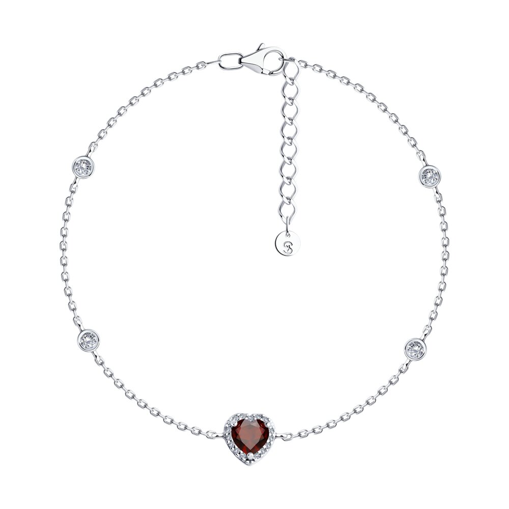Браслет с гранатом и фианитами из серебра 925 пробы арт. 92050165