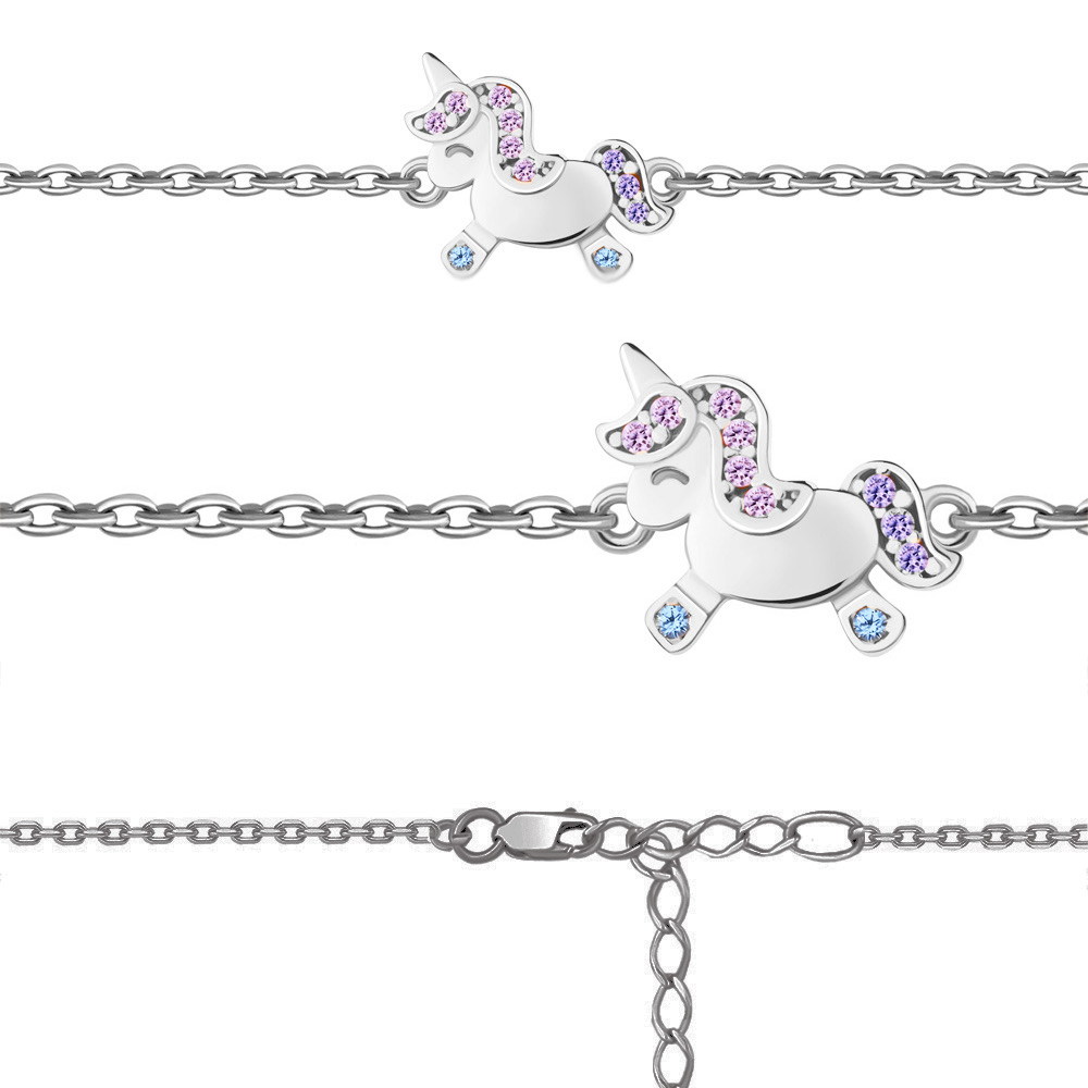 Браслет "Единорог" с фианитами и шпинелью из серебра 925 пробы