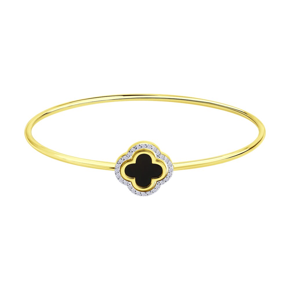 Браслет "Клевер" с агатом и фианитами из желтого золота 585 пробы арт. 750670-2
