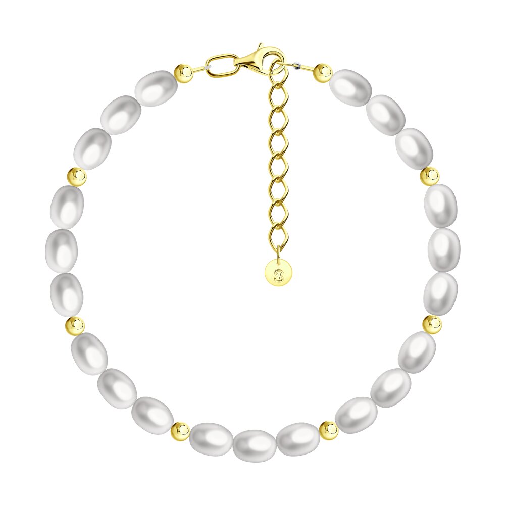 Браслет с жемчугом из серебра 925 пробы с позолотой арт. 92050184