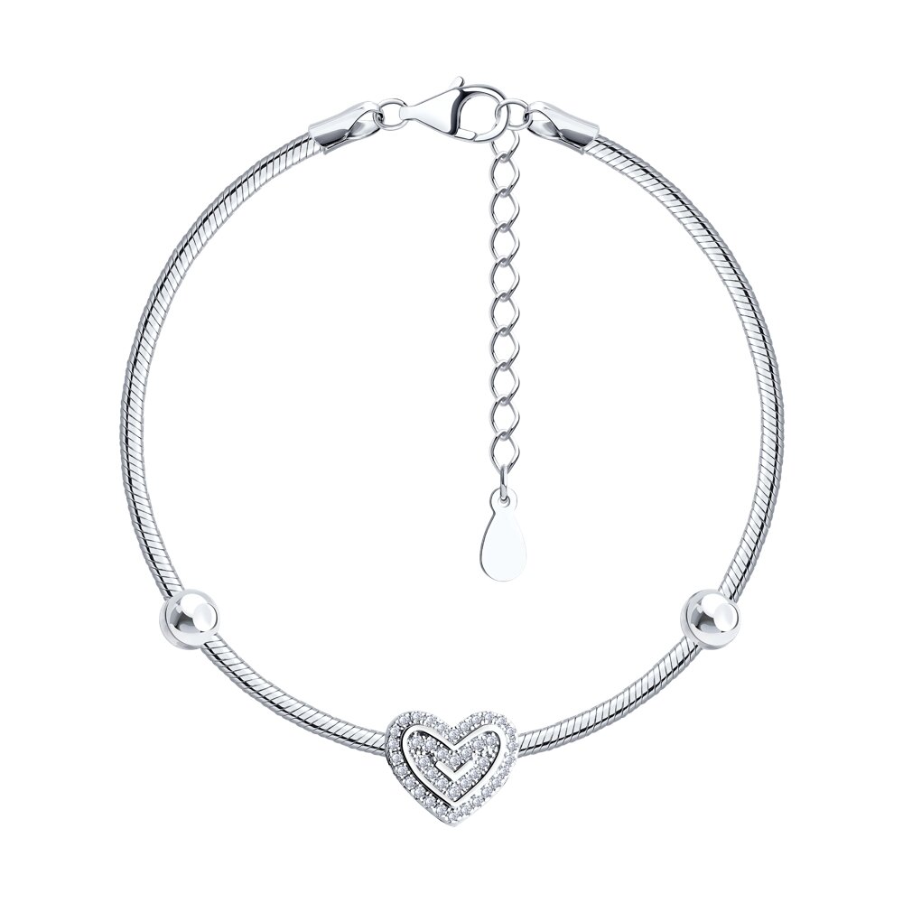 Браслет "Сердце" с фианитами из серебра 925 пробы арт. 94051123-91