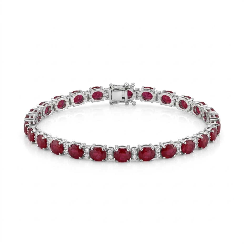 Браслет с рубинами и бриллиантами из белого золота 585 пробы