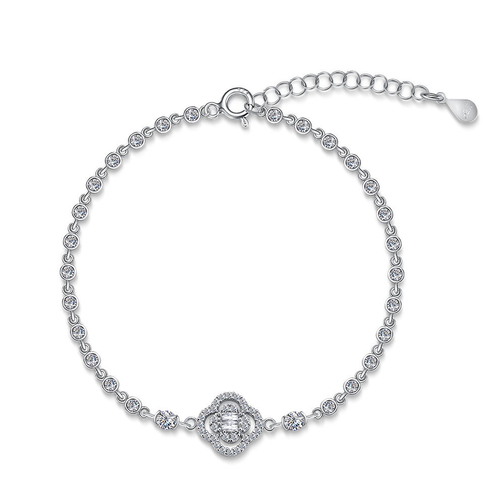 Браслет "Клевер" с фианитами из серебра 925 пробы