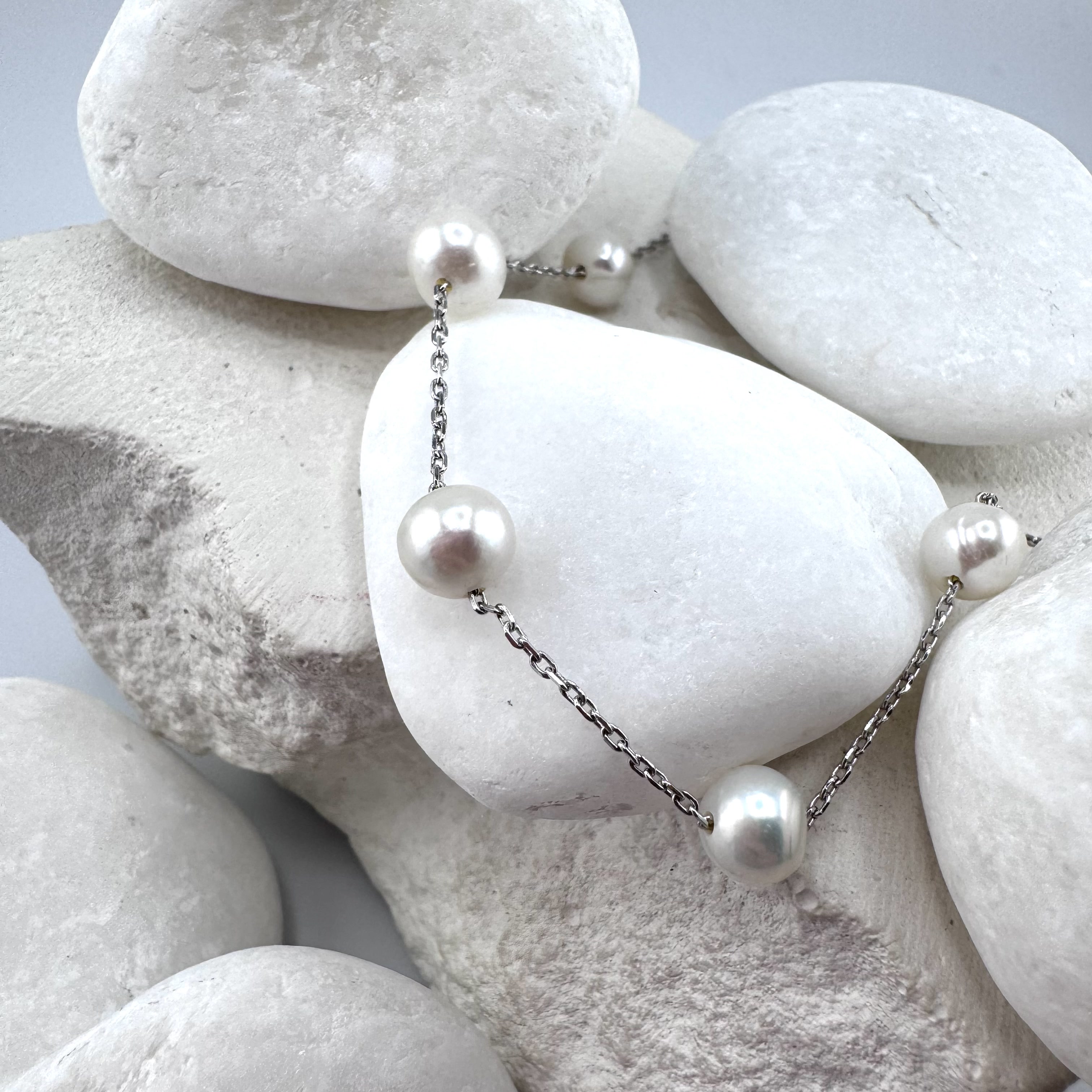 Браслет с жемчугом и фианитами из серебра 925 пробы арт. BR437