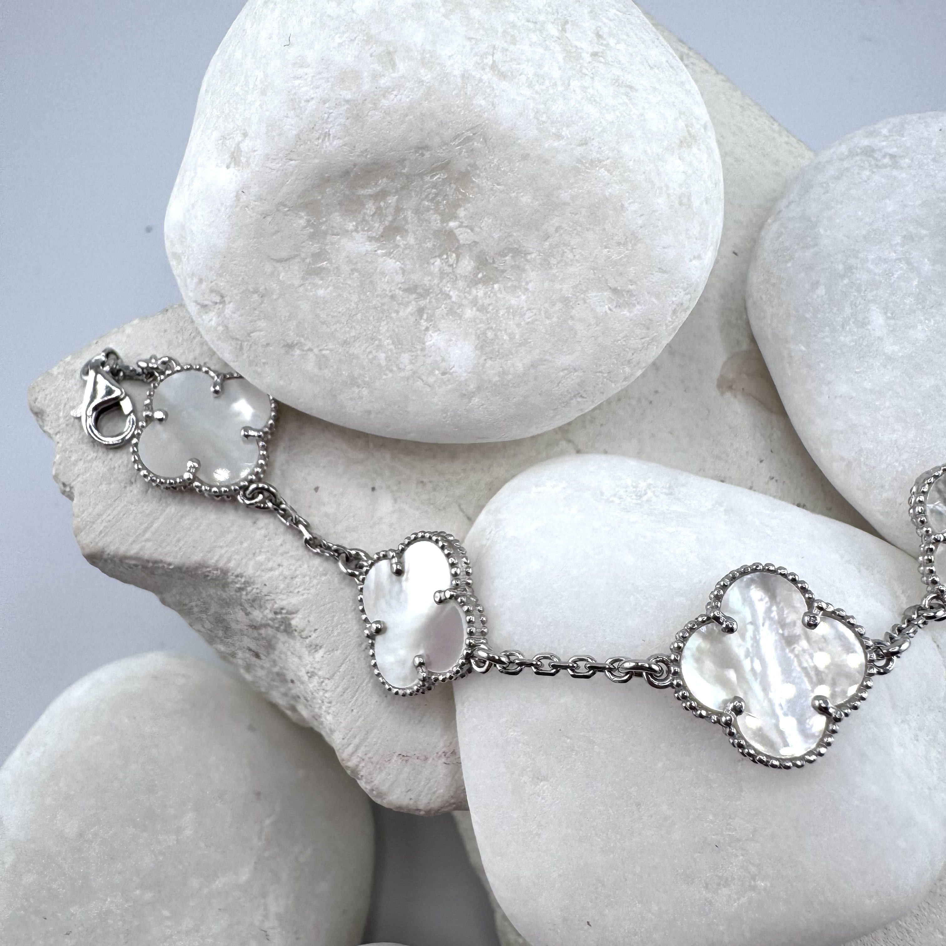 Браслет "Клевера" с перламутром из серебра 925 пробы