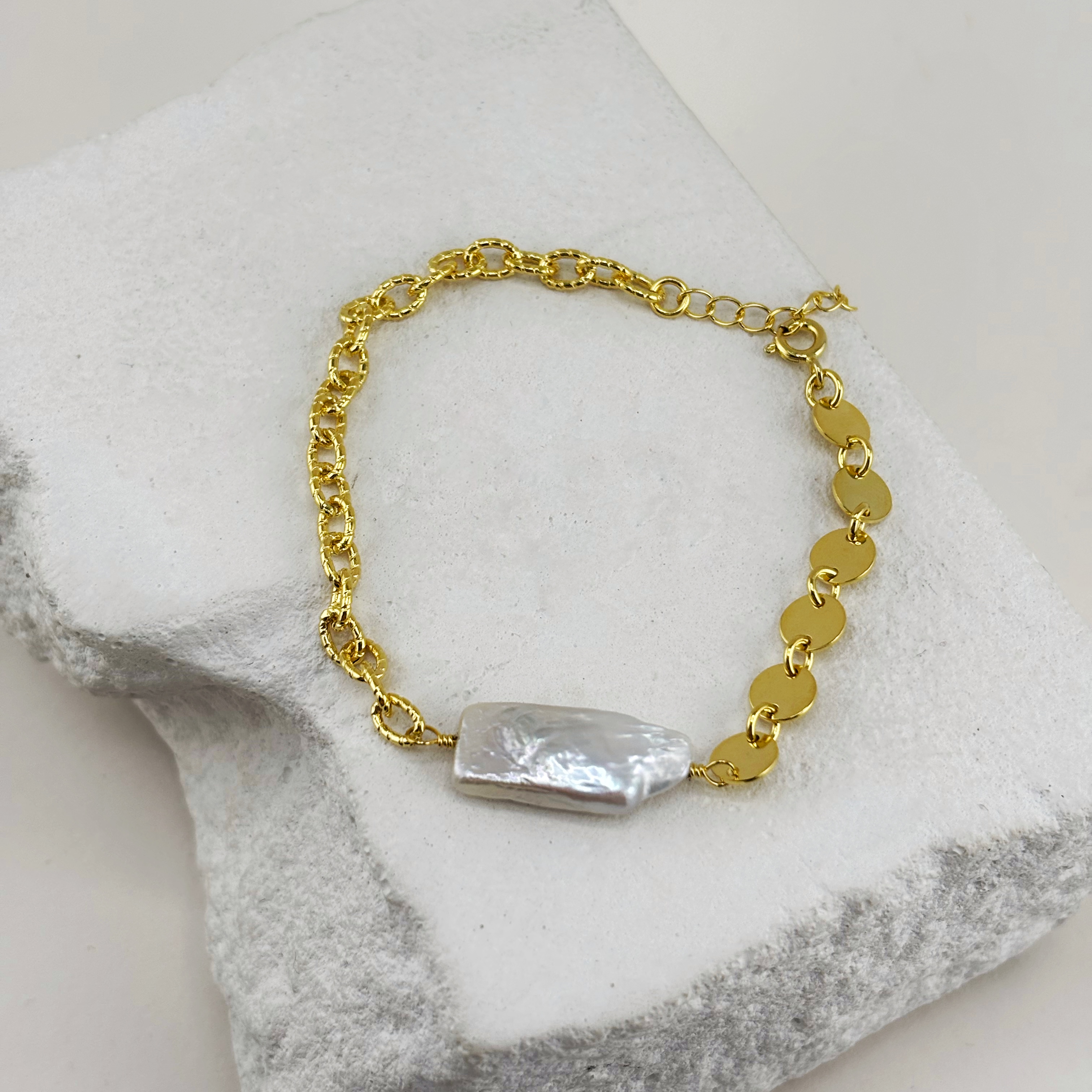 Браслет с жемугом из серебра 925 пробы с позолотой