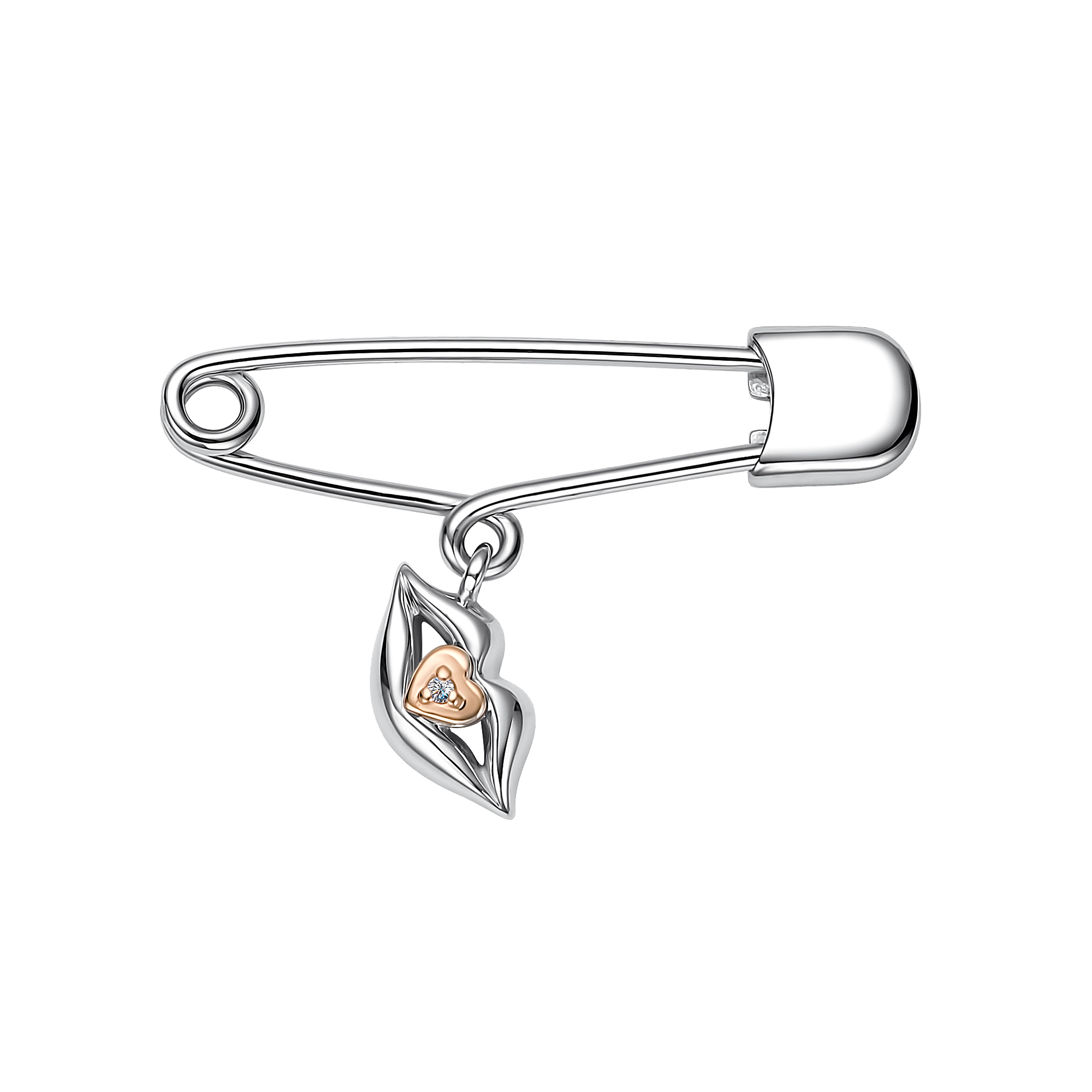 Брошь "Губы" с бриллиантом и золотой вставкой из серебра 925 пробы арт. 04-3543/000Б-00