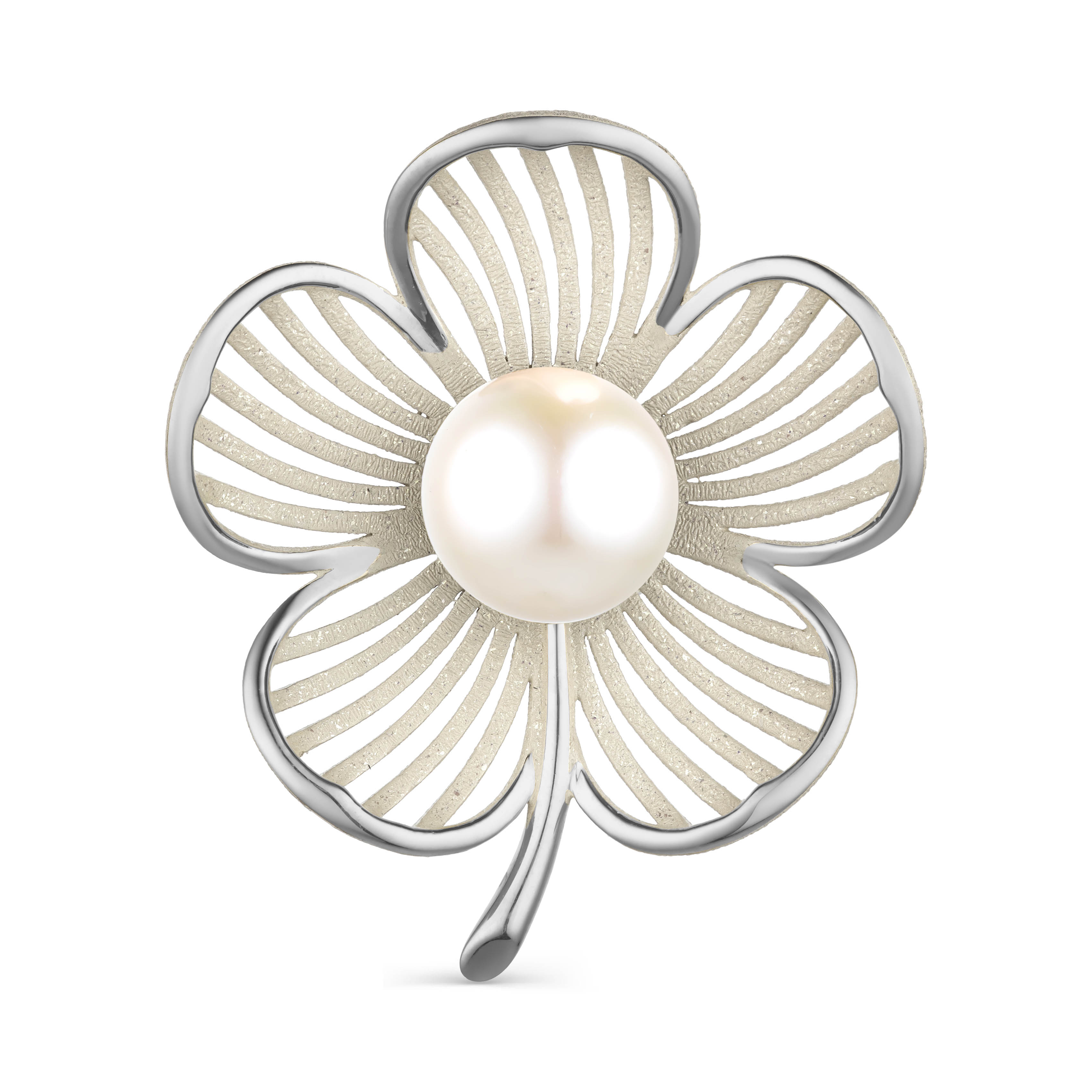 Брошь "Цветок" с эмалью и жемчугом из серебра 925 пробы арт. 57002S1H