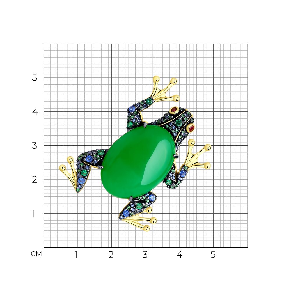 Брошь "Лягушка" с фианитами, корундом и кварцем из серебра 925 пробы с позолотой арт. 83040023