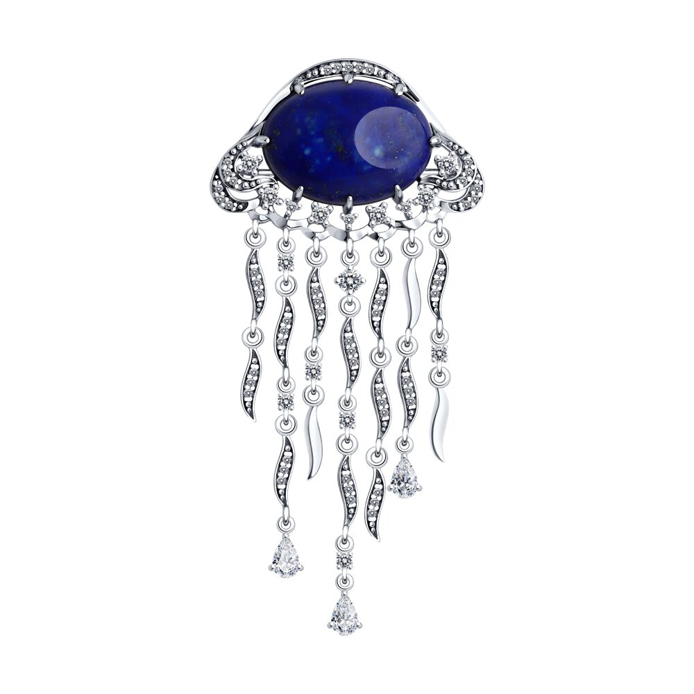Брошь с ляписом и фианитом из серебра 925 пробы арт. 83040039