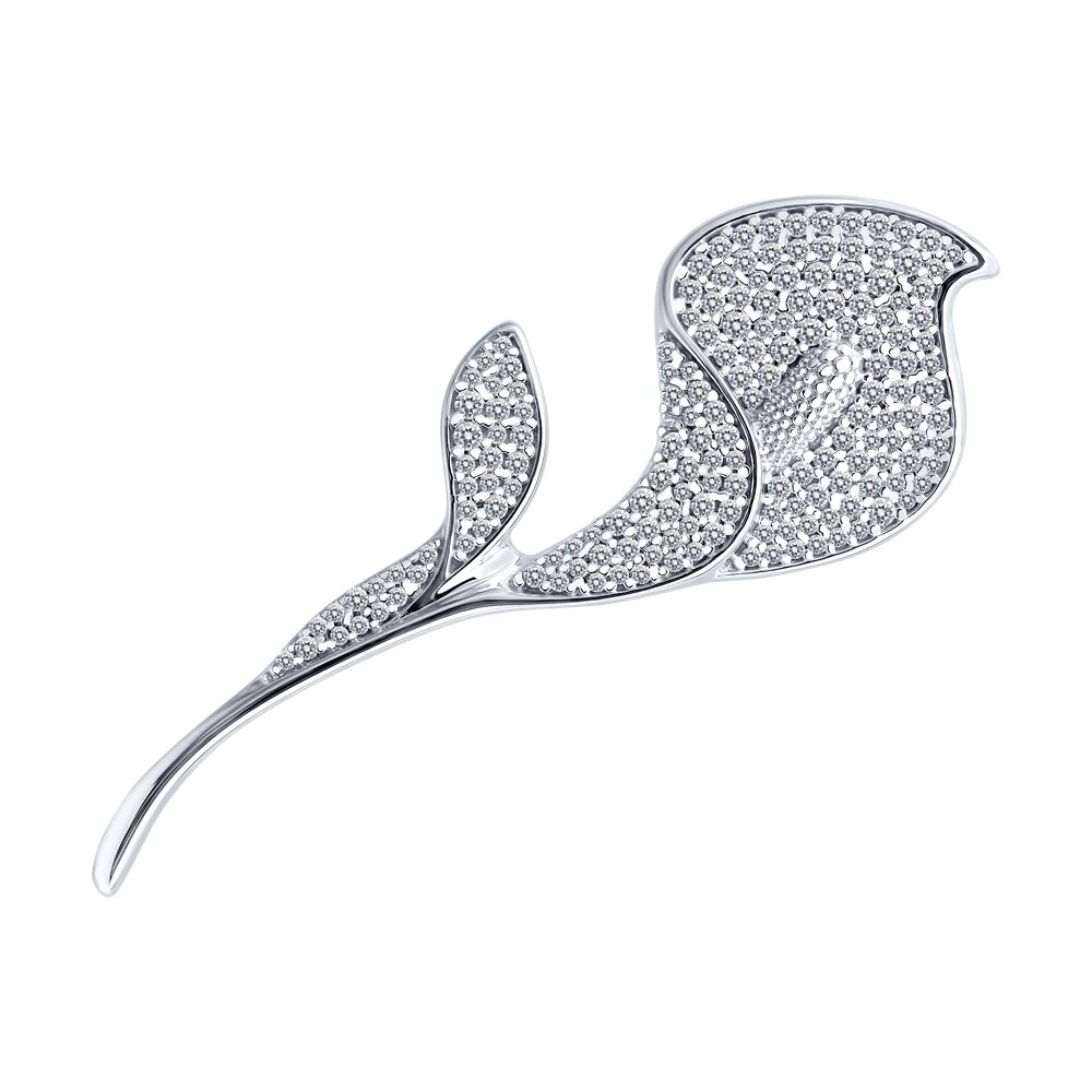 Брошь "Цветок" с фианитами из серебра 925 пробы арт. 94049021