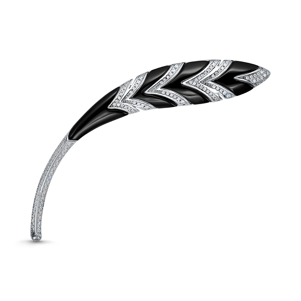 Брошь "Лист" с фианитами и ониксом из серебра 925 пробы арт. B41497_BR_OX_WG