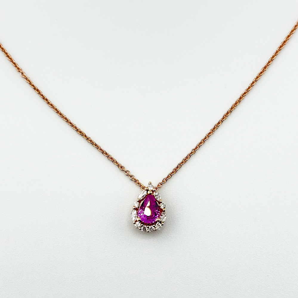 7 Бриллиант Кр-57 0,11ct H/SI1 4 Бриллиант М-55 0,1ct H/SI11 Сапфир фантазийный Груша 0,77ct Розовый Пластиковая вставка0,01
