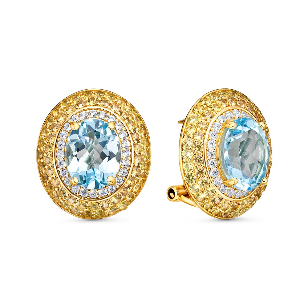 Серьги с топазами, сапфирами и цирконом из серебра 925 пробы арт. E-05700-88-S00_SR_YS_BT_Y
