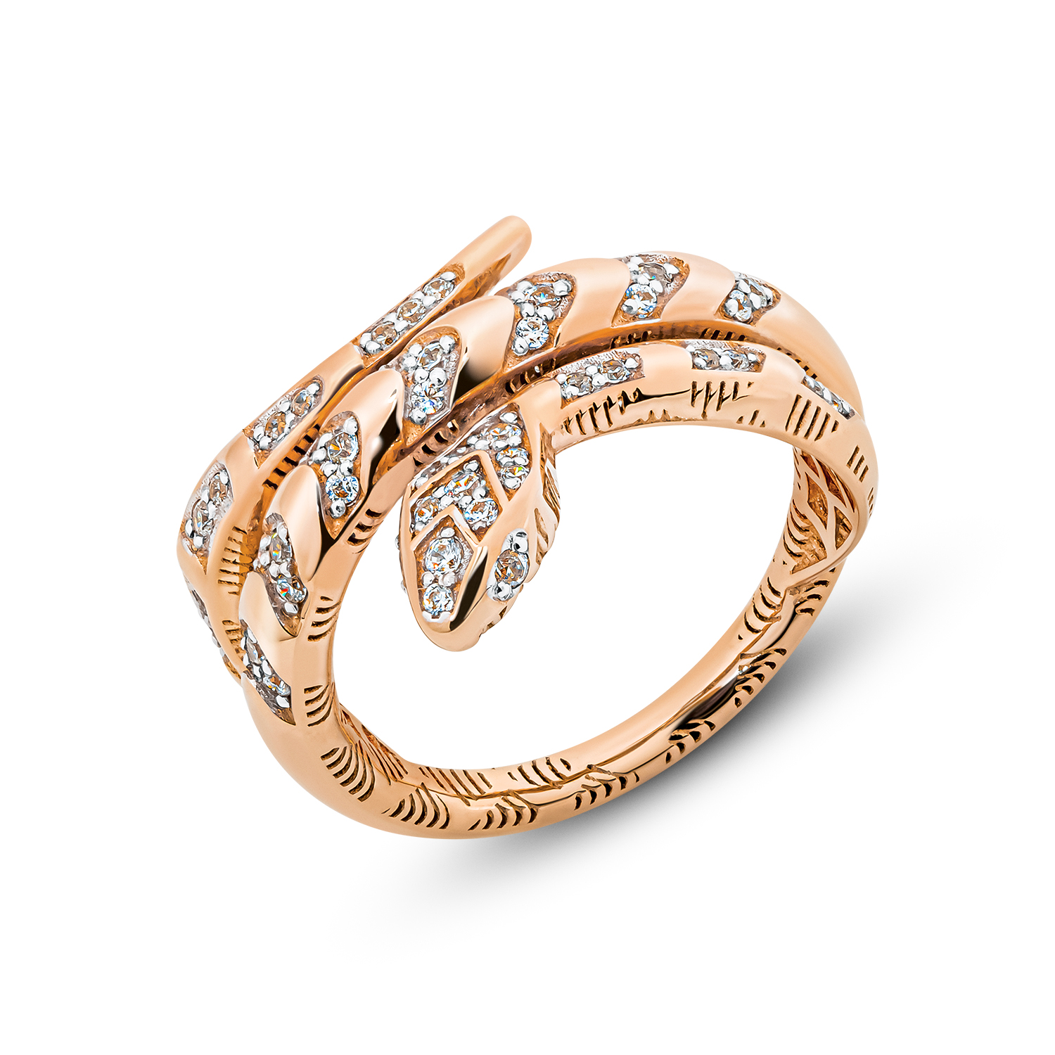 Кольцо "Змея" с фианитами из золота 585 пробы