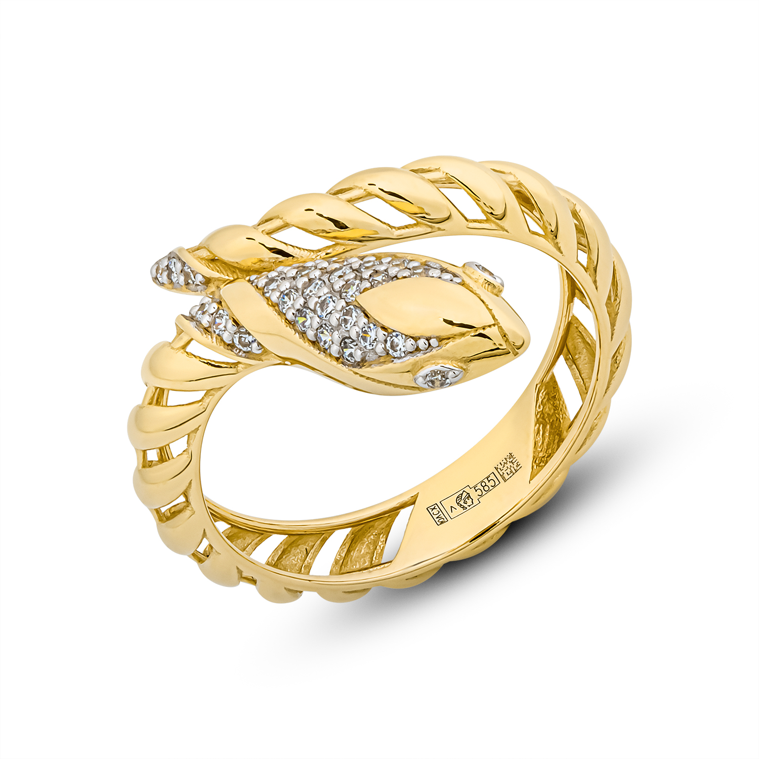Кольцо "Змея" с фианитами из желтого золота 585 пробы арт. 00698-10-030106-00