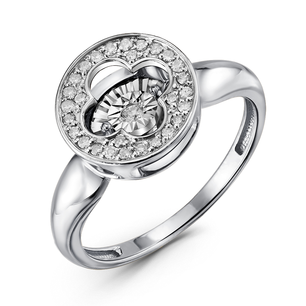 Кольцо с танцующим бриллиантом из белого золота 585 пробы