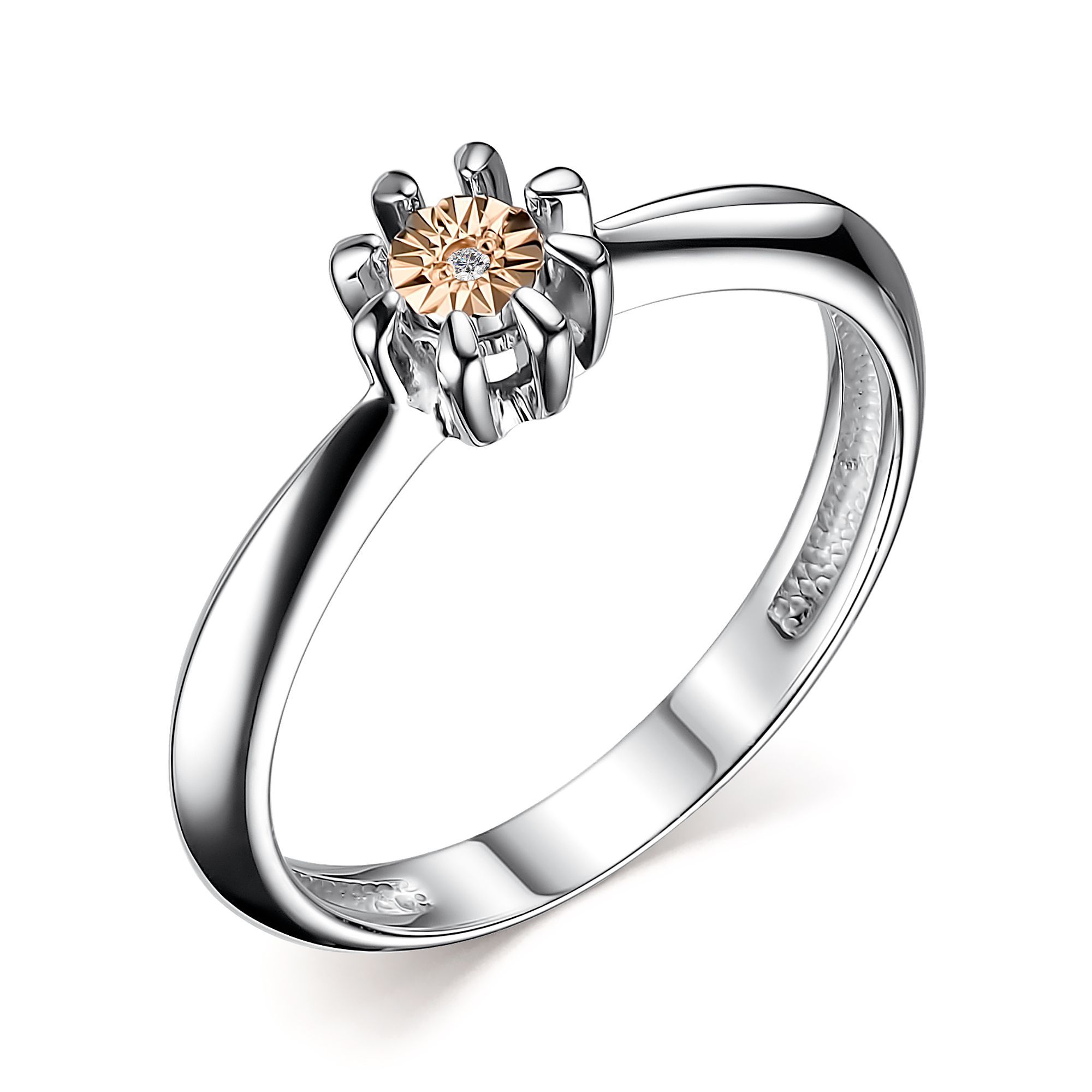 Кольцо с бриллиантом и золотой вставкой из серебра 925 пробы арт. 01-3010/000Б-00