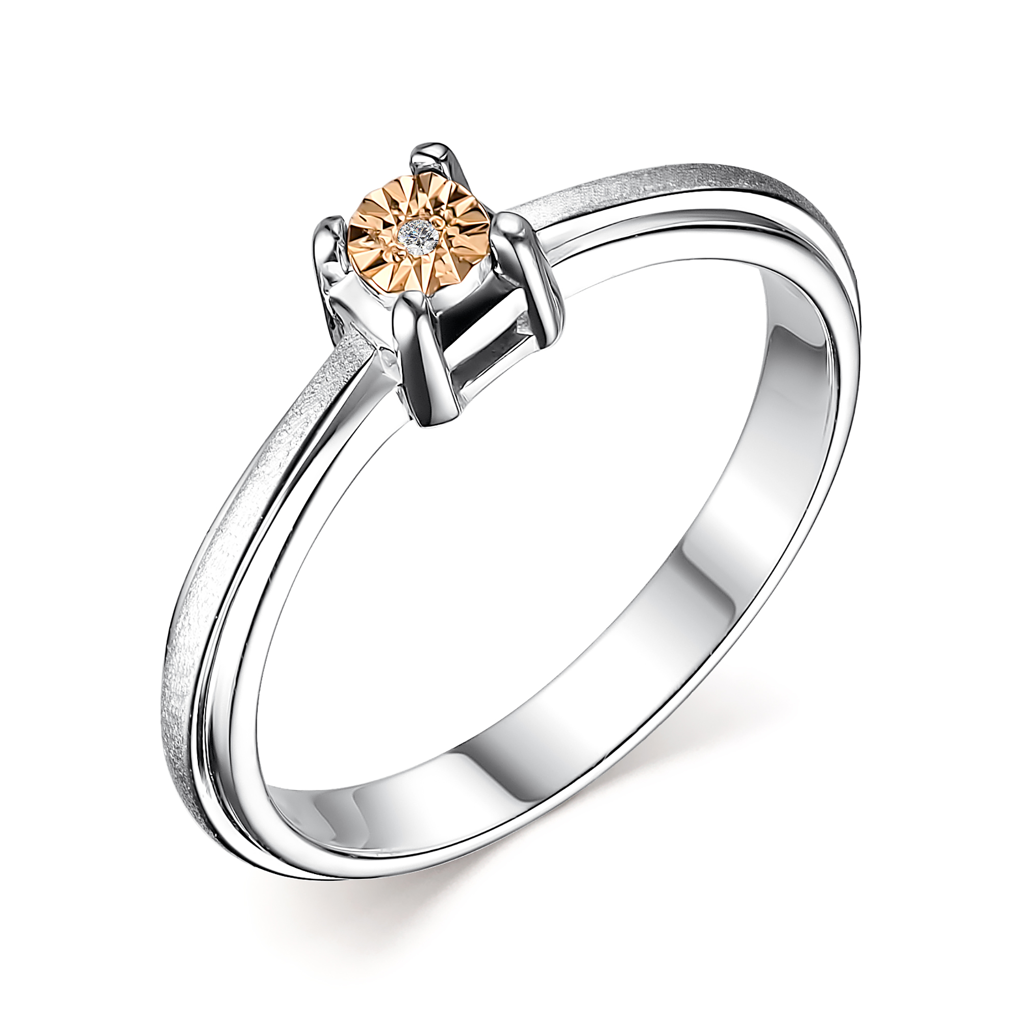 Кольцо с бриллиантом и золотой вставкой из серебра 925 пробы арт. 01-3011/000Б-00