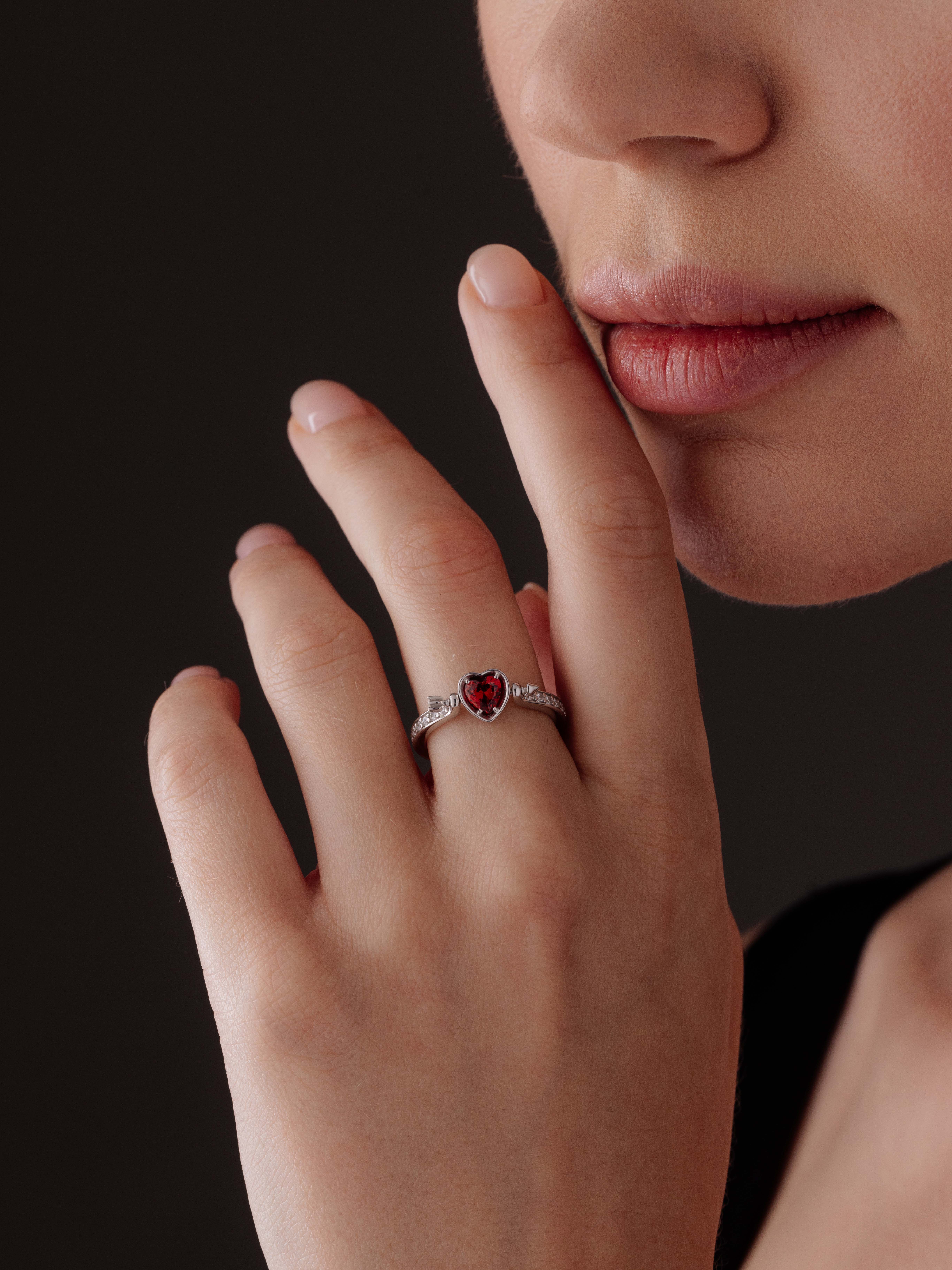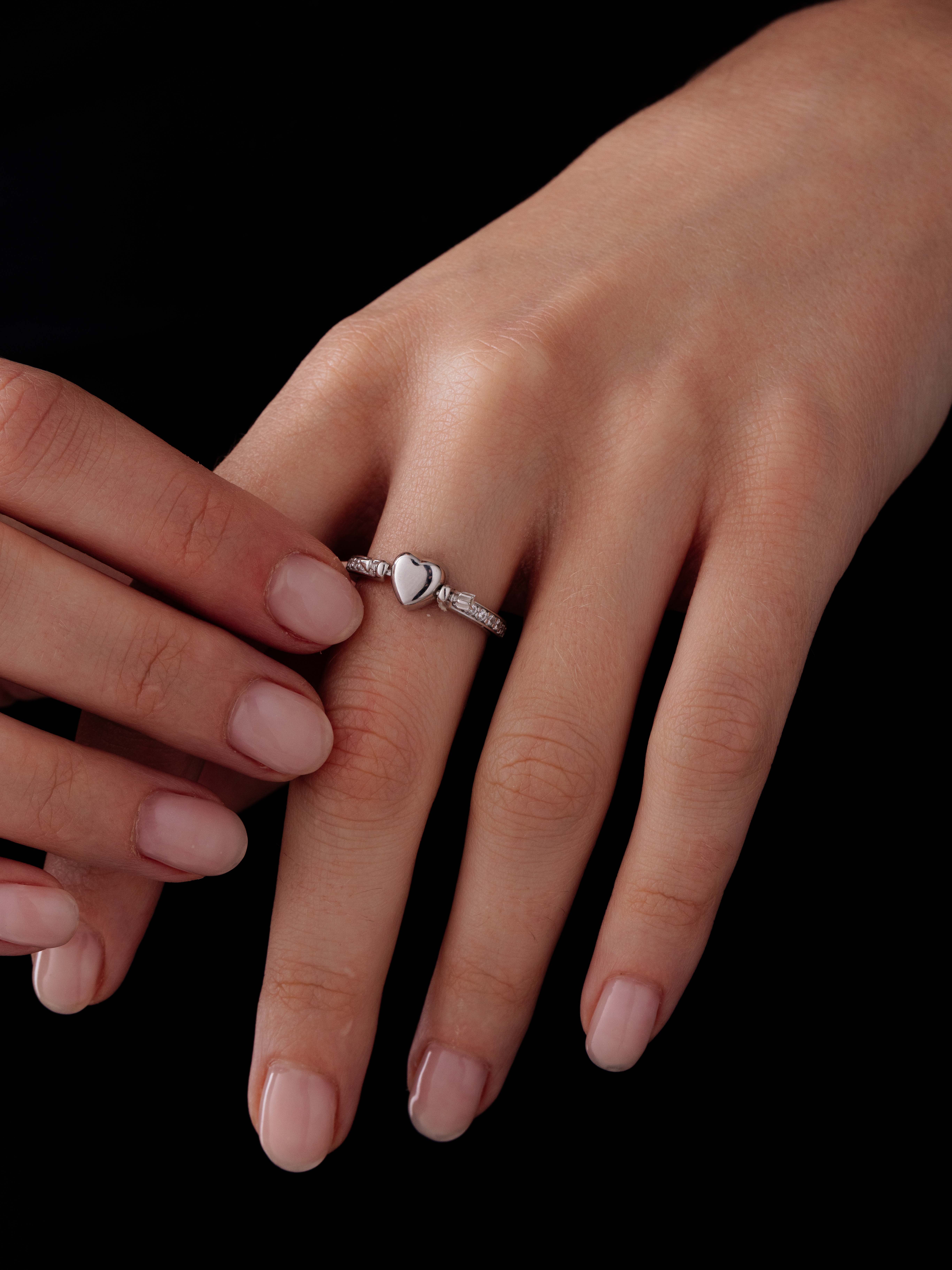 Кольцо "Сердце" с фианитами из серебра 925 пробы