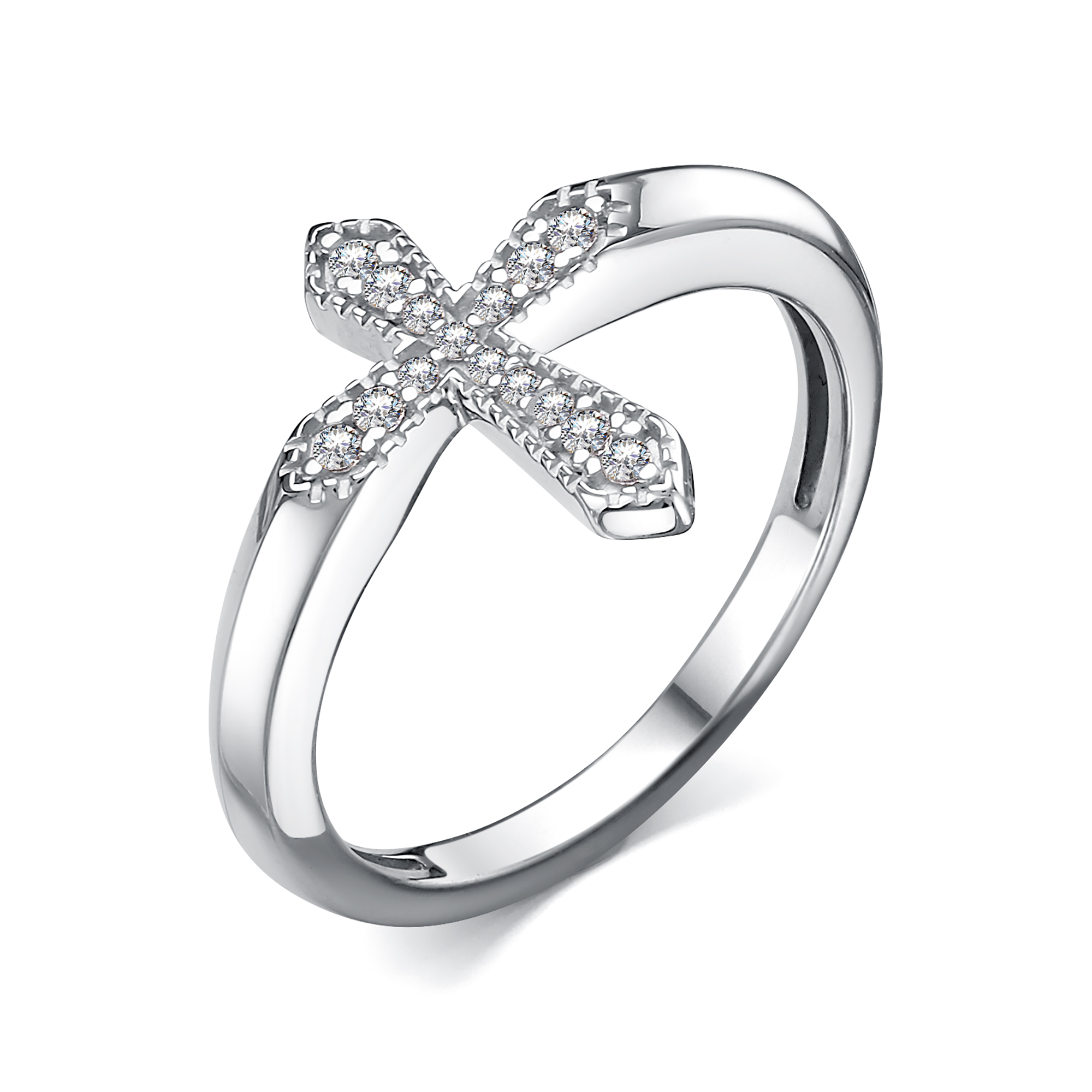 Кольцо "Крест" с фианитами из серебра 925 пробы арт. 01-4479/00КЦ-00