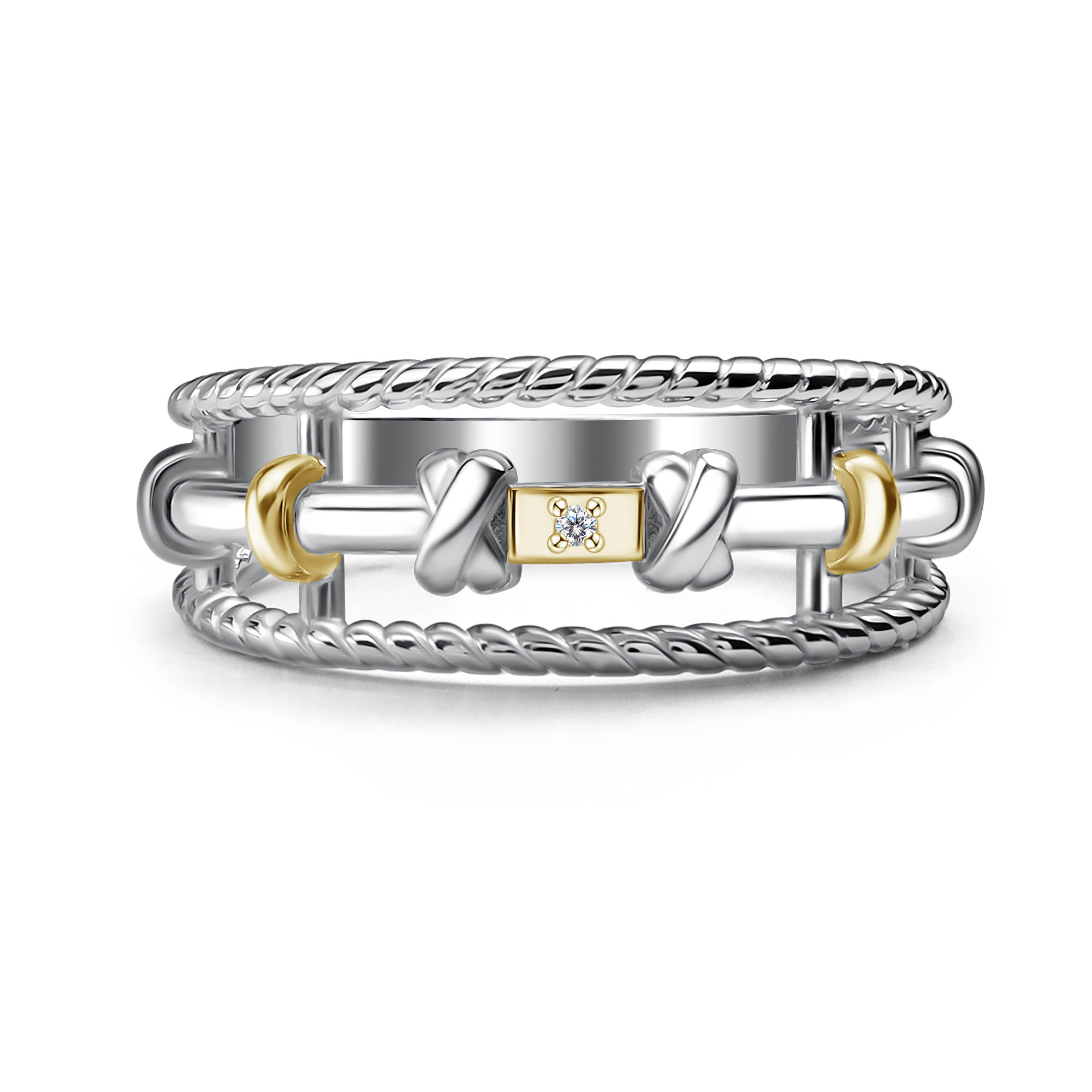 Кольцо с бриллиантом и золотой вставкой из серебра 925 пробы