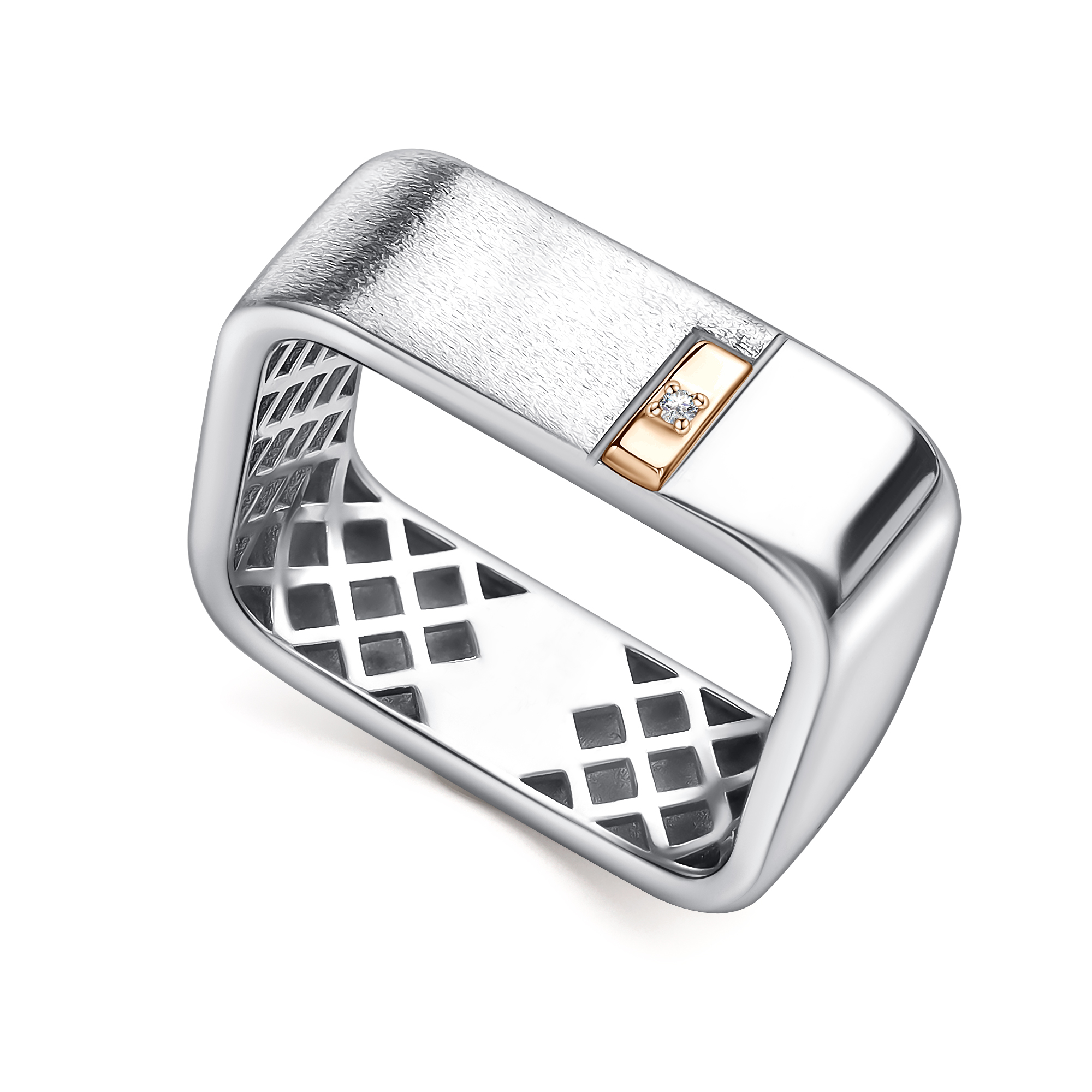 Кольцо с бриллиантом и золотой вставкой из серебра 925 пробы арт. 01-5361/000Б-00