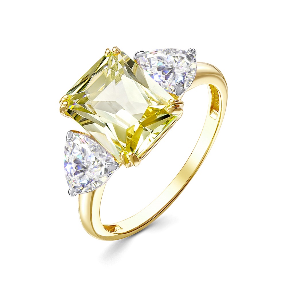 Кольцо с ситалом и фианитами из желтого золота 585 пробы