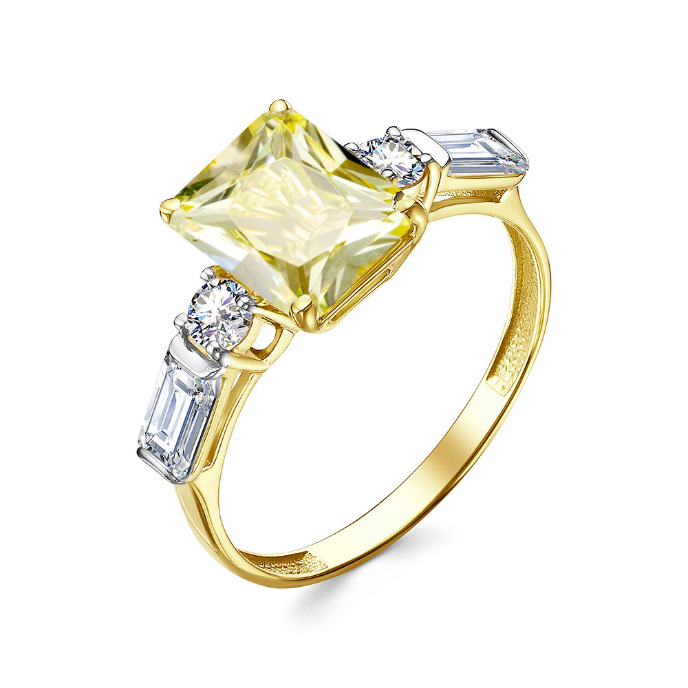 Кольцо с ситаллом и фианитами из желтого золота 585 пробы