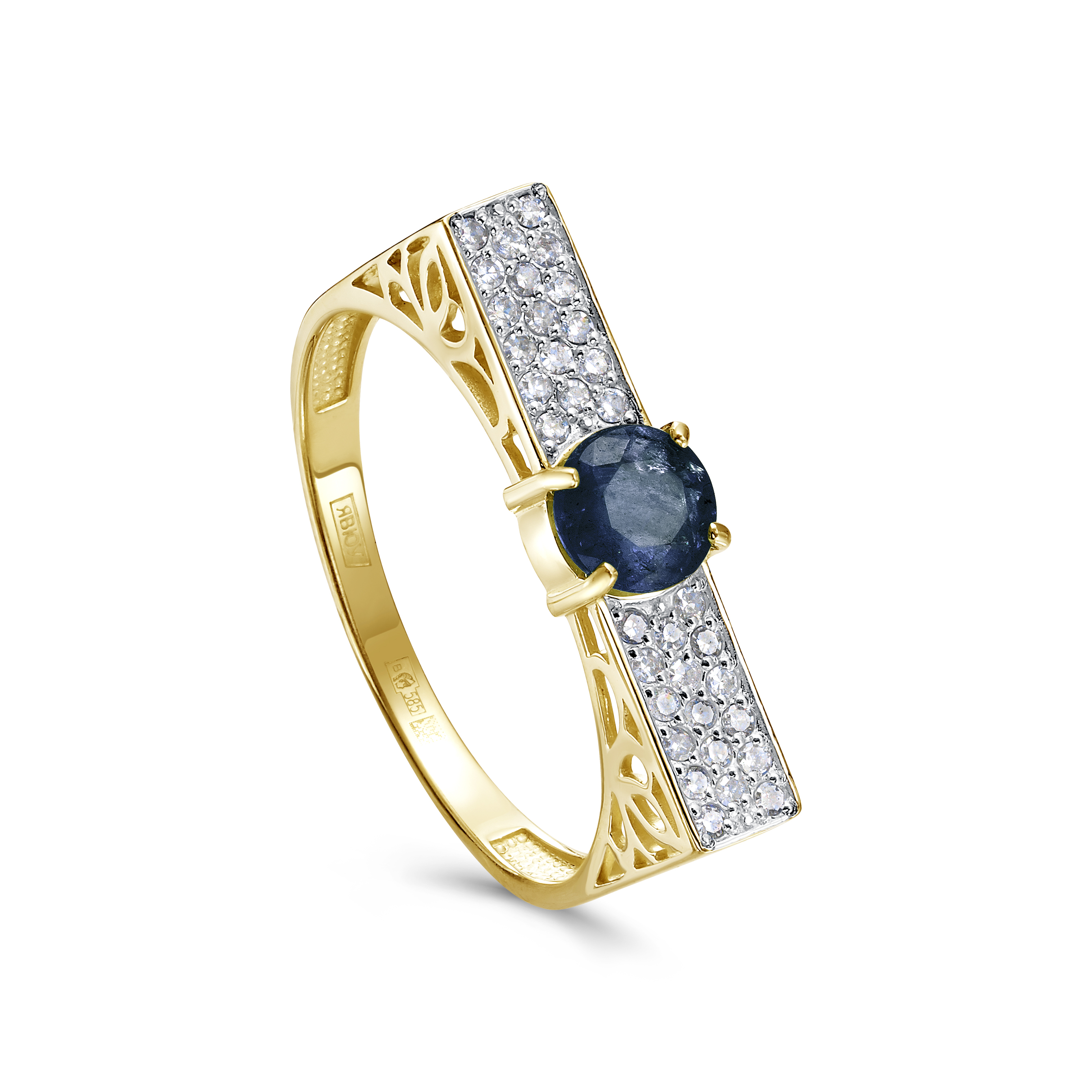 Кольцо с сапфиром и бриллиантами из желтого золота 585 пробы арт. 11-21789-1100