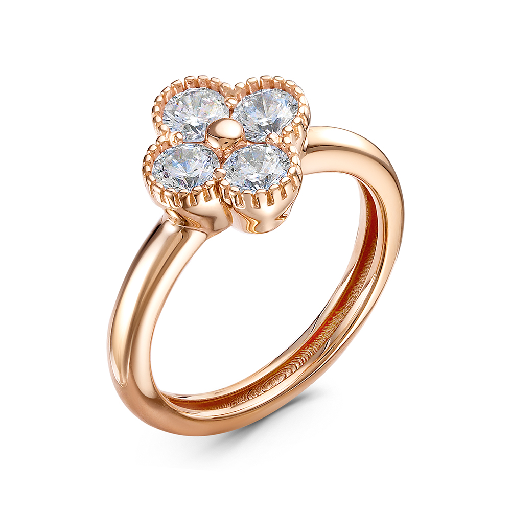 Кольцо "Клевер" с бриллианитом из золта 585 пробы