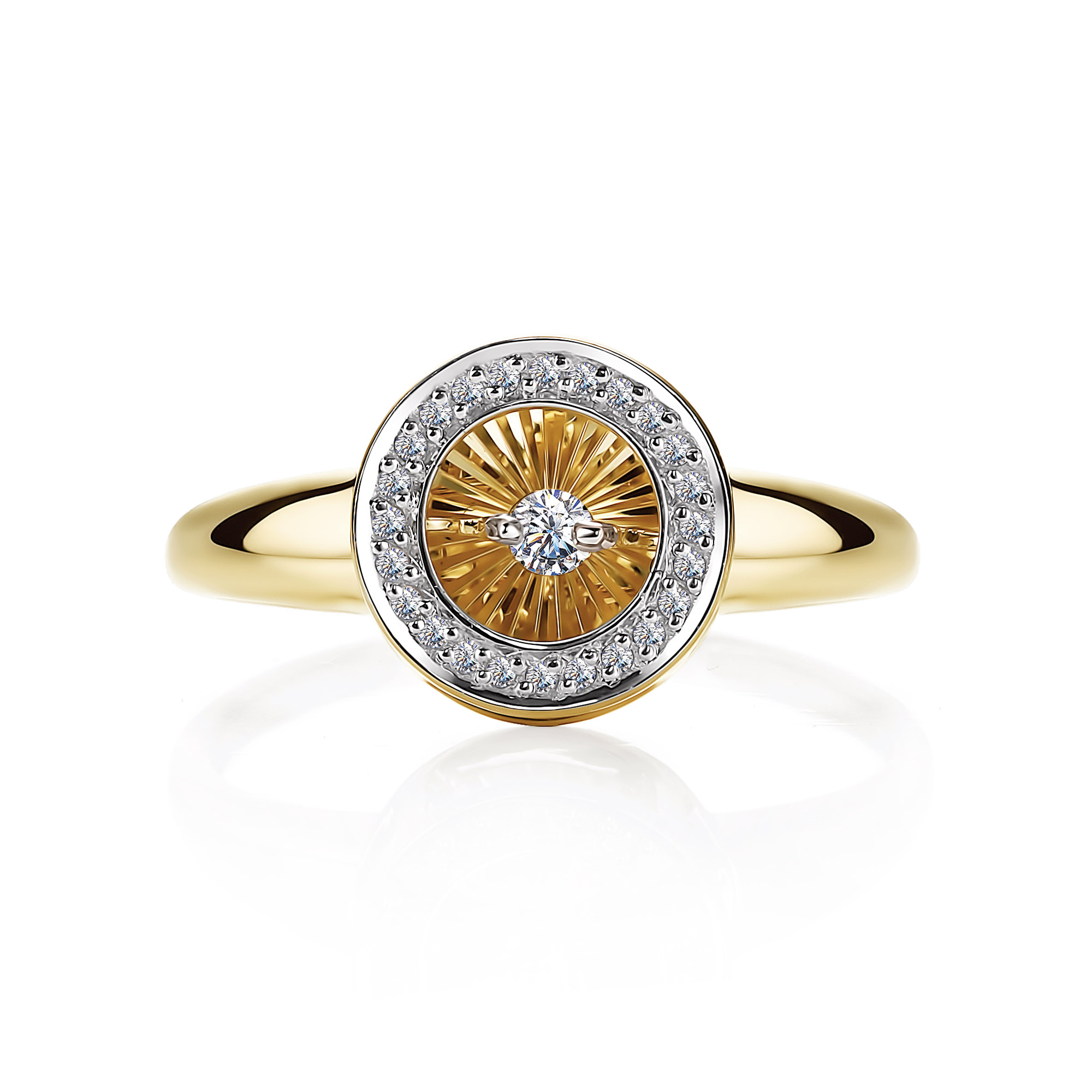 Кольцо с танцующими бриллиантами из желтого золота 585 пробы