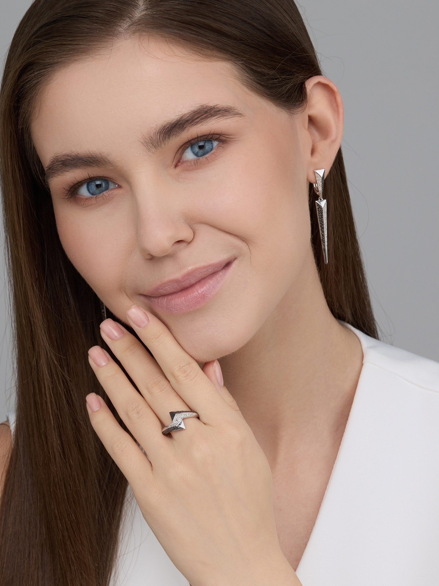 Кольцо с бриллиантами из белого золота 585 пробы арт. 16211-213