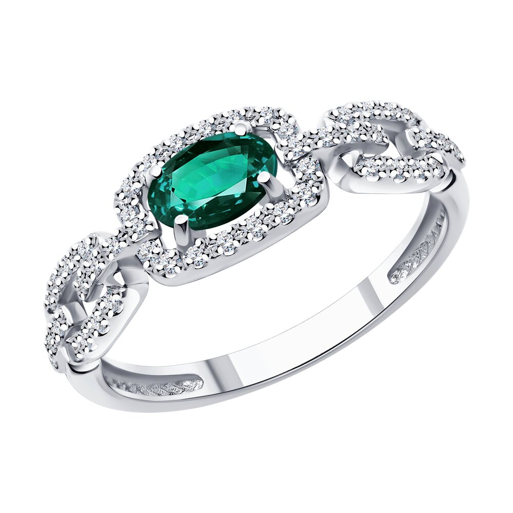 Кольцо с бриллиантами и изумрудом из белого золота 585 пробы