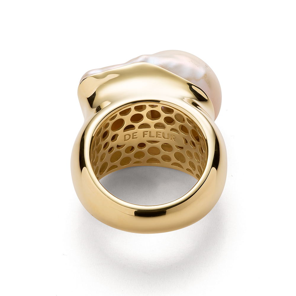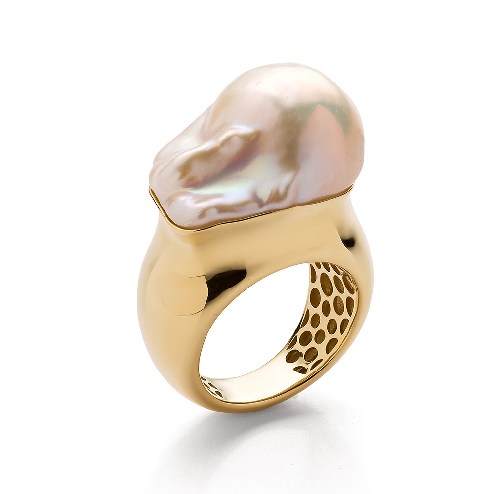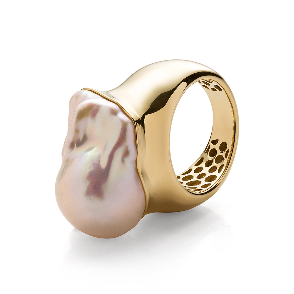 Кольцо с барочным жемчугом из золота 585 пробы