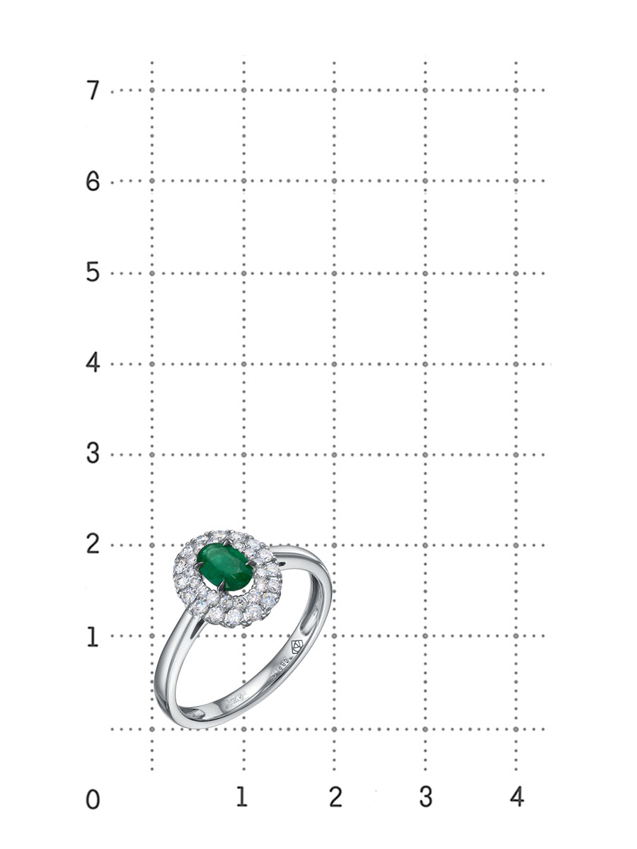 Кольцо с изумрудом и бриллиантами из белого золота 585 пробы арт. 5-7817-106-1Б-ИзБр