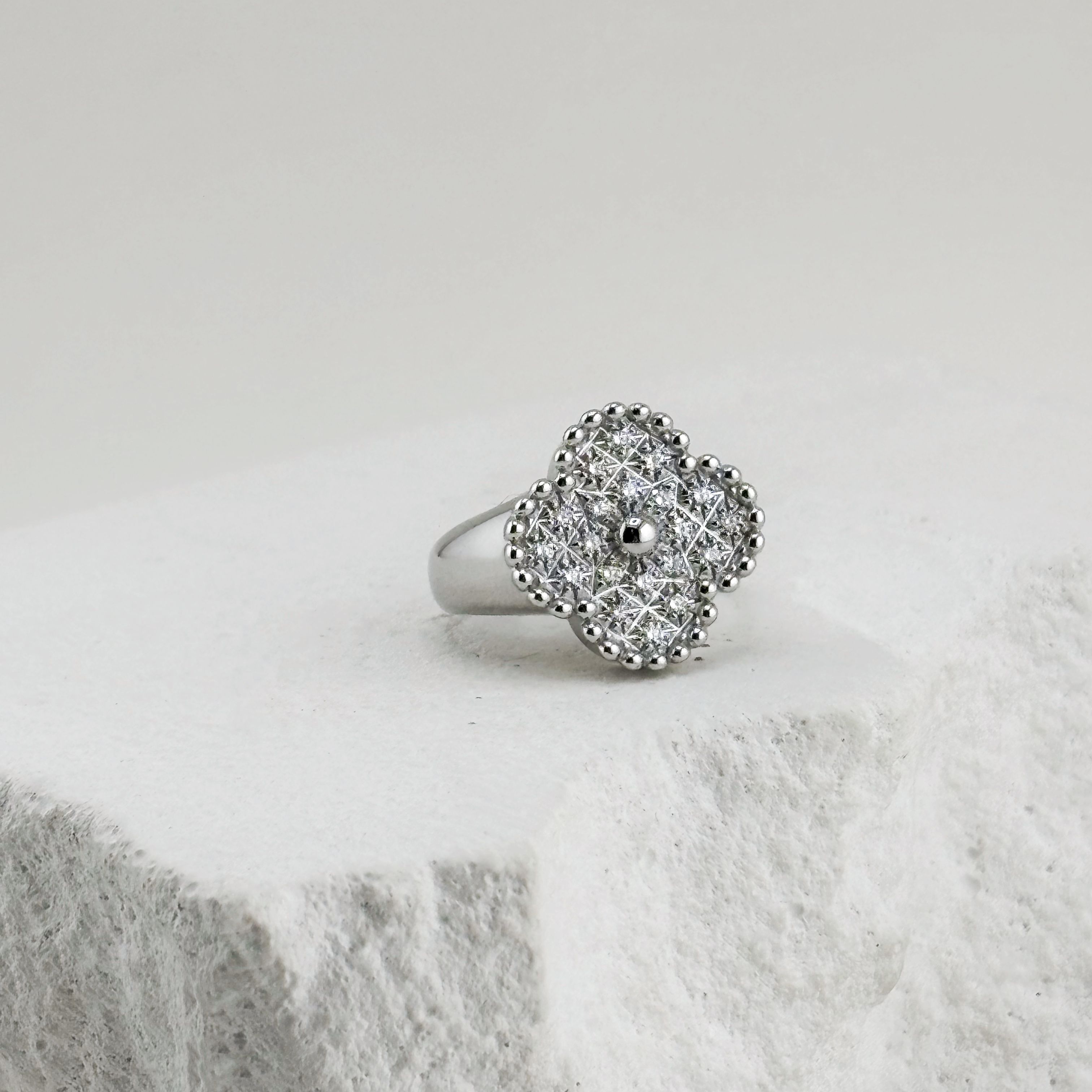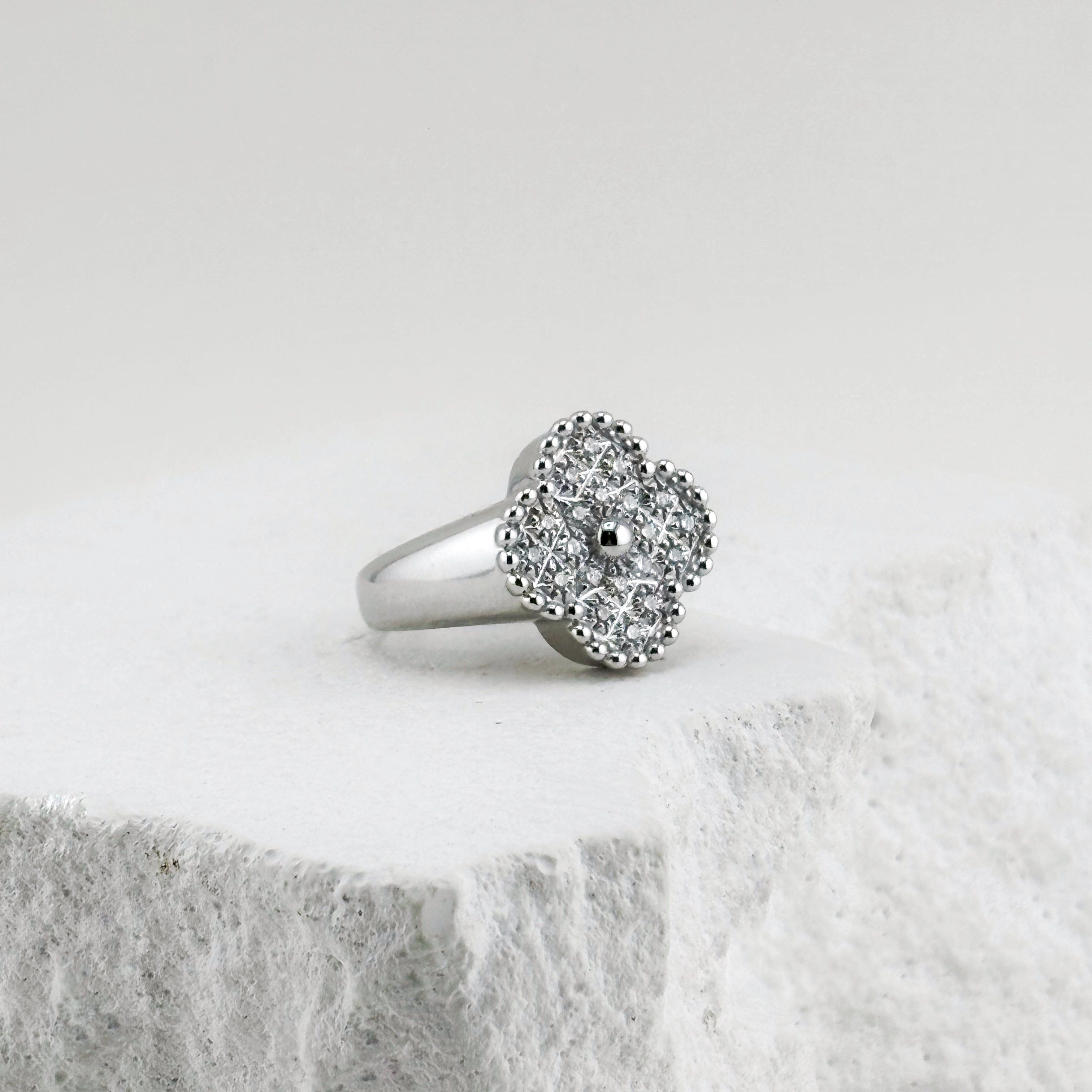 Кольцо "Клевер" с бриллиантами из белого золота 585 пробы