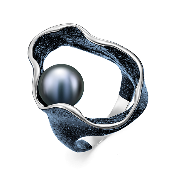 Кольцо с жемчугом и эмалью из серебра 925 пробы