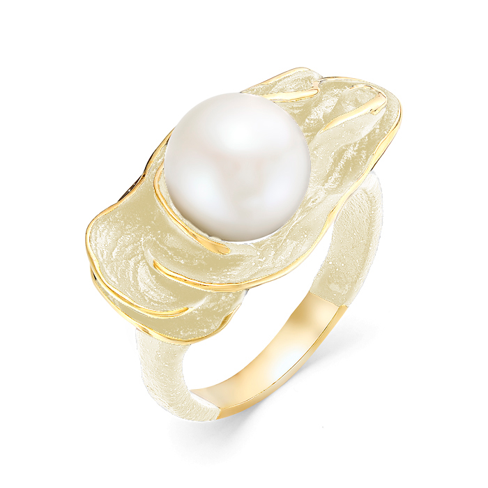 Кольцо с жемчугом и эмалью из серебра 925 пробы с позолотой
